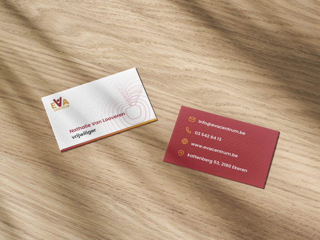 Voor de VZW Eva centrum hebben ik en mijn team op school de opdracht gekregen om hun hele huisstijl te rebranden, ik heb daaronder de opdracht gekregen om een nieuw logo voor hun te maken. Zo heb ik ook gelijk met die logo’s 2 nice to have items gemaakt een tote bag en visitekaartjes